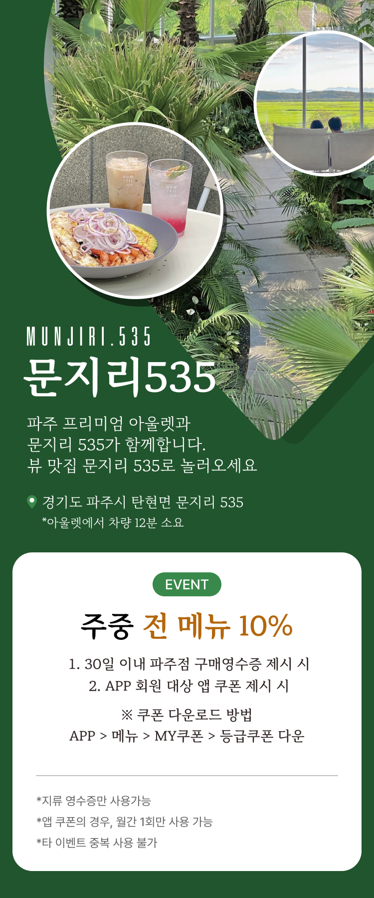 문지리 535 전 메뉴 10% 할인 EVENT