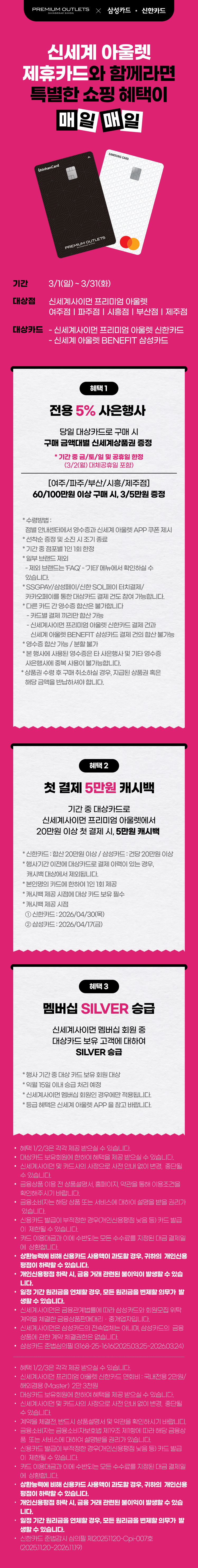 신세계 아울렛 제휴카드는 쇼핑혜택이 매일매일!