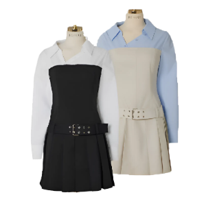 백 밴딩 스트랩 카라 원피스