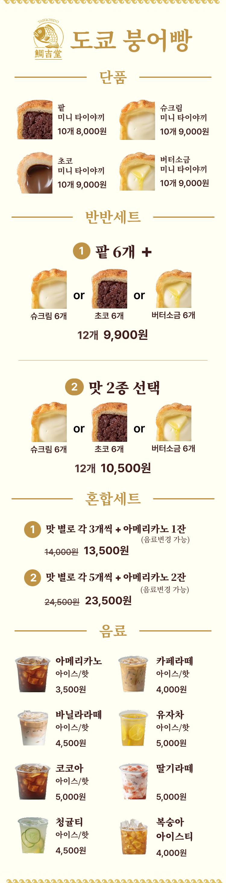 도쿄 붕어빵은 일본 타이야끼 반죽으로 모찌 식감을 느낄수 있는 프리미엄 붕어빵 입니다.