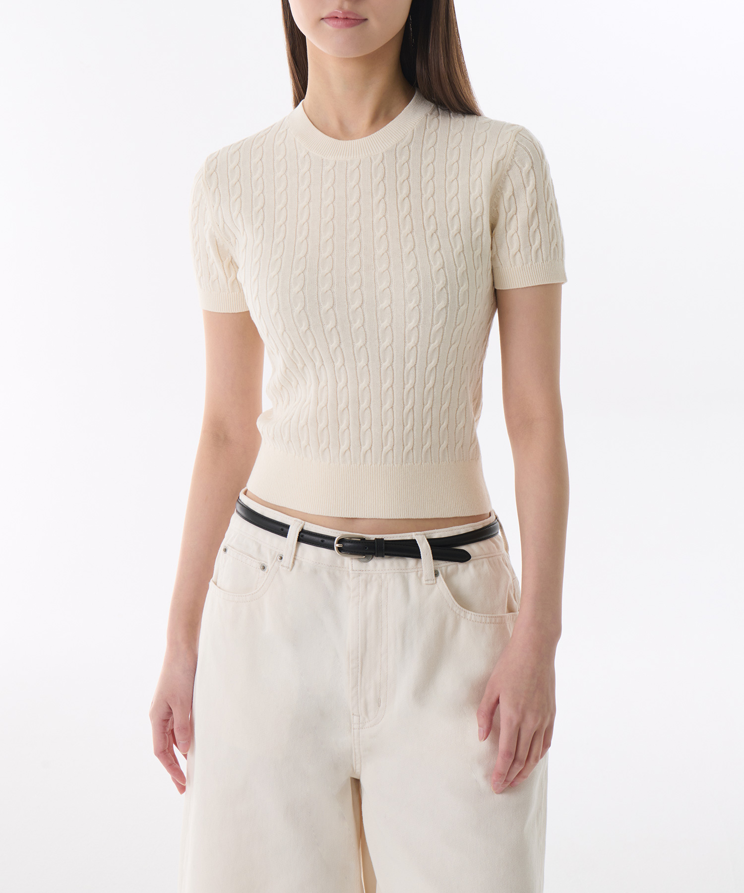 우먼즈 케이블 크루 넥 반소매 니트 39,900원 → 24,900원 (38% 할인)