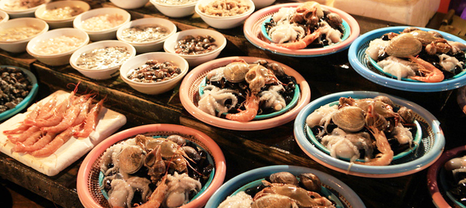 这里的摊位出售干鳀鱼、干鱿鱼、虾、各种鱼片等干鱼类和紫菜、裙带菜、贝类等海产品。不仅面相全国的批发商,对普通消费者也以低廉的价格批发、零售,是釜山最大的干鱼市场。